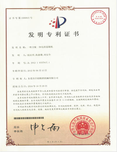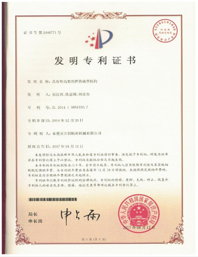 發(fā)明專利證書