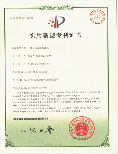 實(shí)用新型專利證書